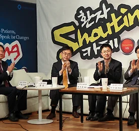 샤우팅 다시보기/리뷰 영상 썸네일형 리스트형 6번째 환자Shouting카페 review </center> 더보기 여섯번째 환자Shouting카페에 여러분을 초대합니다. 한국환자단체연합회에서 여섯번째 환자Shouting카페를 오픈합니다. 시간 : 2013년 5월 14일 저녁 7시 장소 : 종로 엠스퀘어 (종각역 4번 출구 대왕빌딩 13층) 외치고 싶은 사람, 들을 준비가 되신 분이라면 누구나 환영합니다. 더보기 제5회 샤우팅카페 리뷰 더보기 제4회 환자Shouting카페에 초대합니다. 제4회 '환자Shouting카페'에 여러분을 초대합니다. o 일 시: 2013년 2월 6일(수) 오후 7시 o 장 소: 엠스퀘어(지하철 1호선 종각역 4번 출구 대왕빌딩 13층) o 사회자: 최현정(MBC 아나운서) 더보기 환자Shouting카페 초대 영상 제3회 환자Shouting카페에 초대합니다. 더보기 이전 1 2 3 4 5 다음